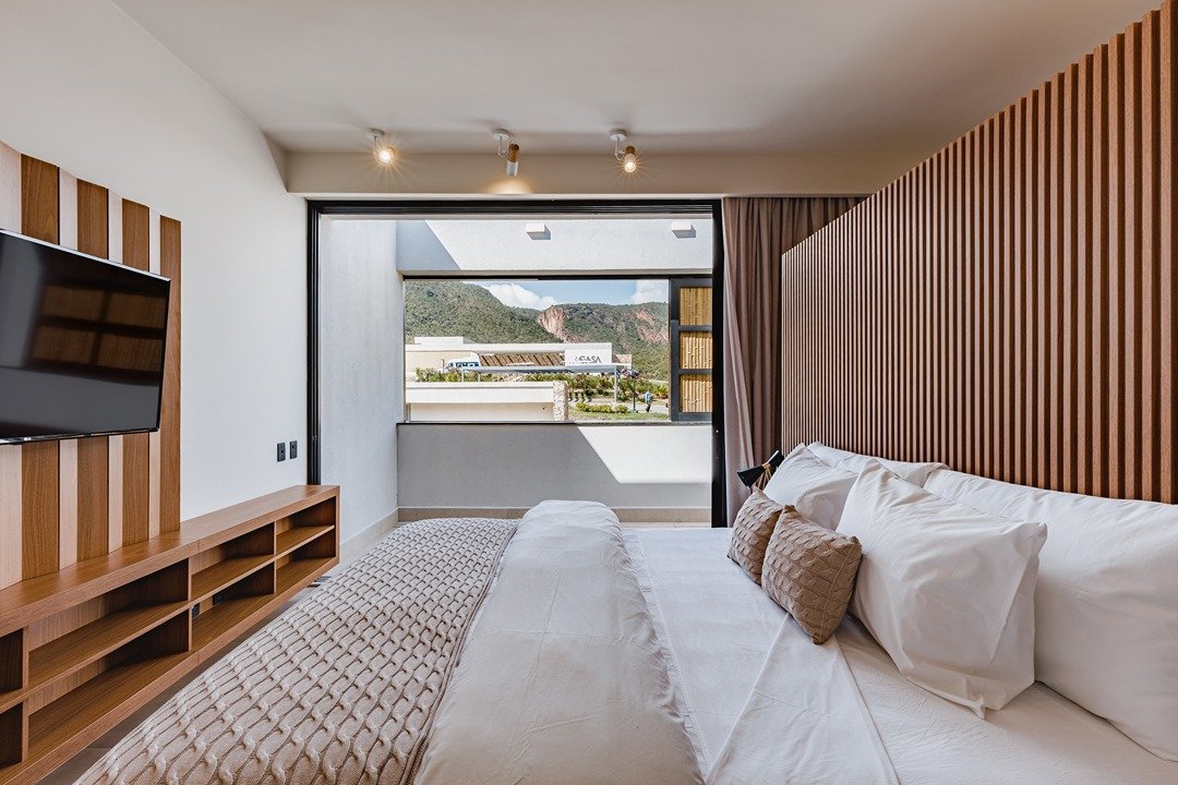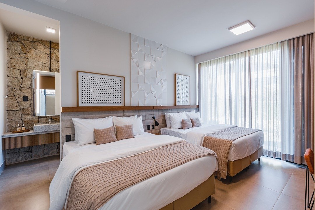 Há opções de 2, 3 ou 4 suítes que acomodam de 6 a 12 pessoas e os hóspedes do InCasa têm acesso ao Hot Park, à Praia do Cerrado e ao Parque das Fontes — todos integrados à paisagem e à experiência de conexão com a natureza.